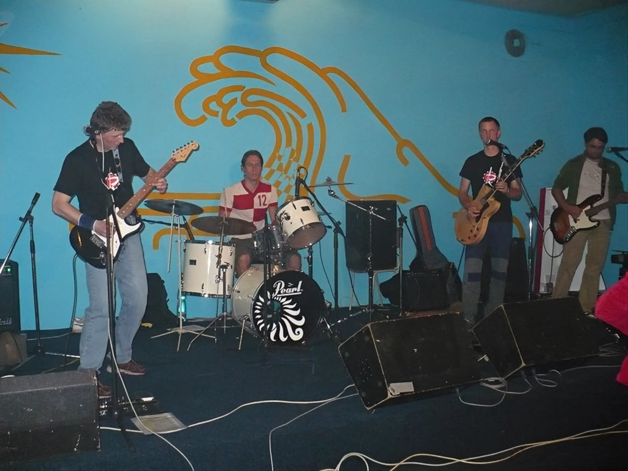 Celý trojkoncert zahájila skupina Post Pubescentos z Jičína 🎤, která hraje asi nejtvrdší hudbu ze všech třech skupin 🪨, po jejím bloku nastoupilo opět bezchybné Metro 👏 a lehce po půl jedenácté jsme nastupovali my – Rónin. 🎸🥁